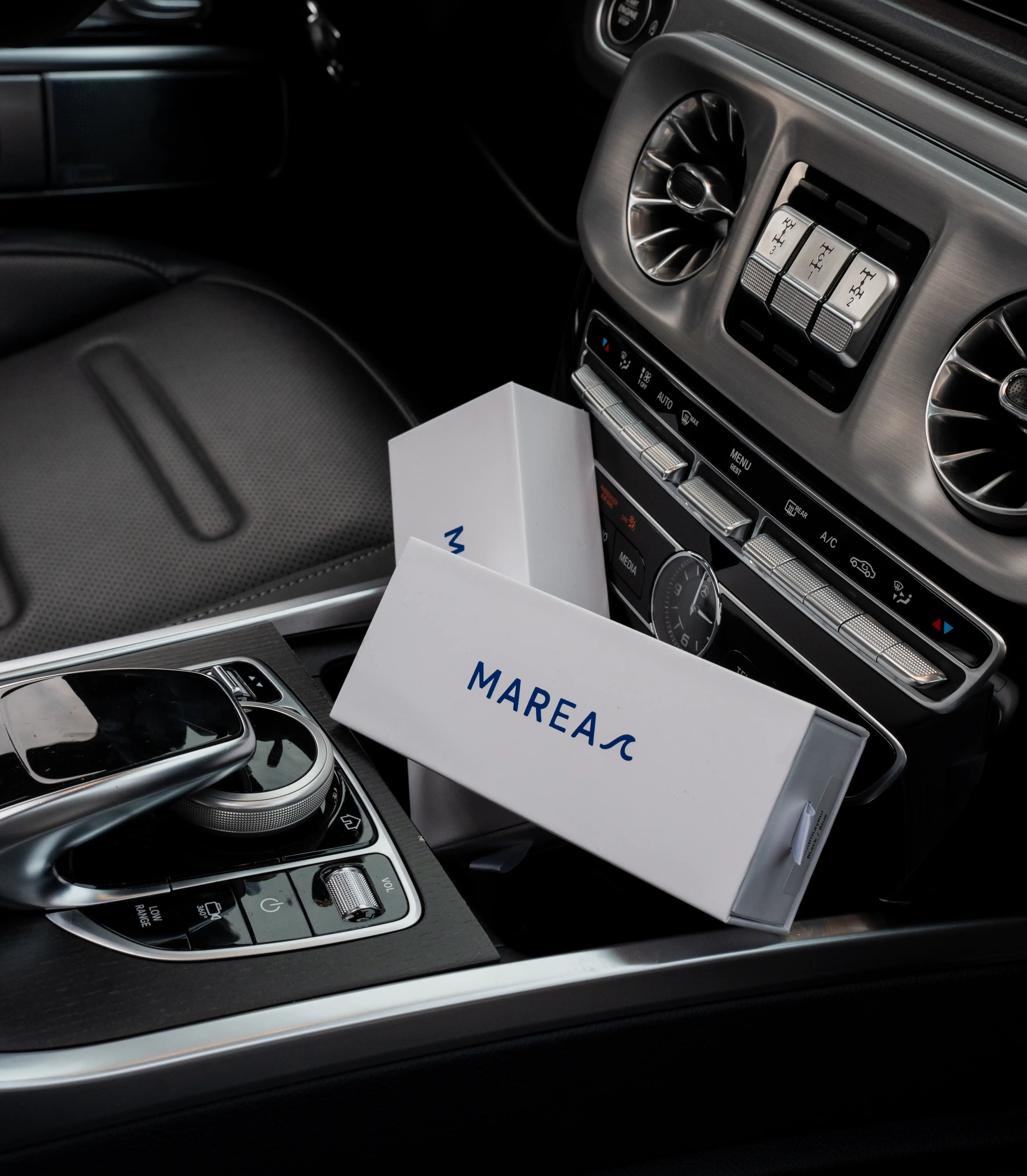 Occhiali da sole Marea Aspen unisex con montatura geometrica nerae e nere con protezione UV. Design moderno e audace con dettagli in oro. Comfort garantito dalle aste ergonomiche. Perfetti per chi cerca un accessorio distintivo che unisce protezione e stile contemporaneo.